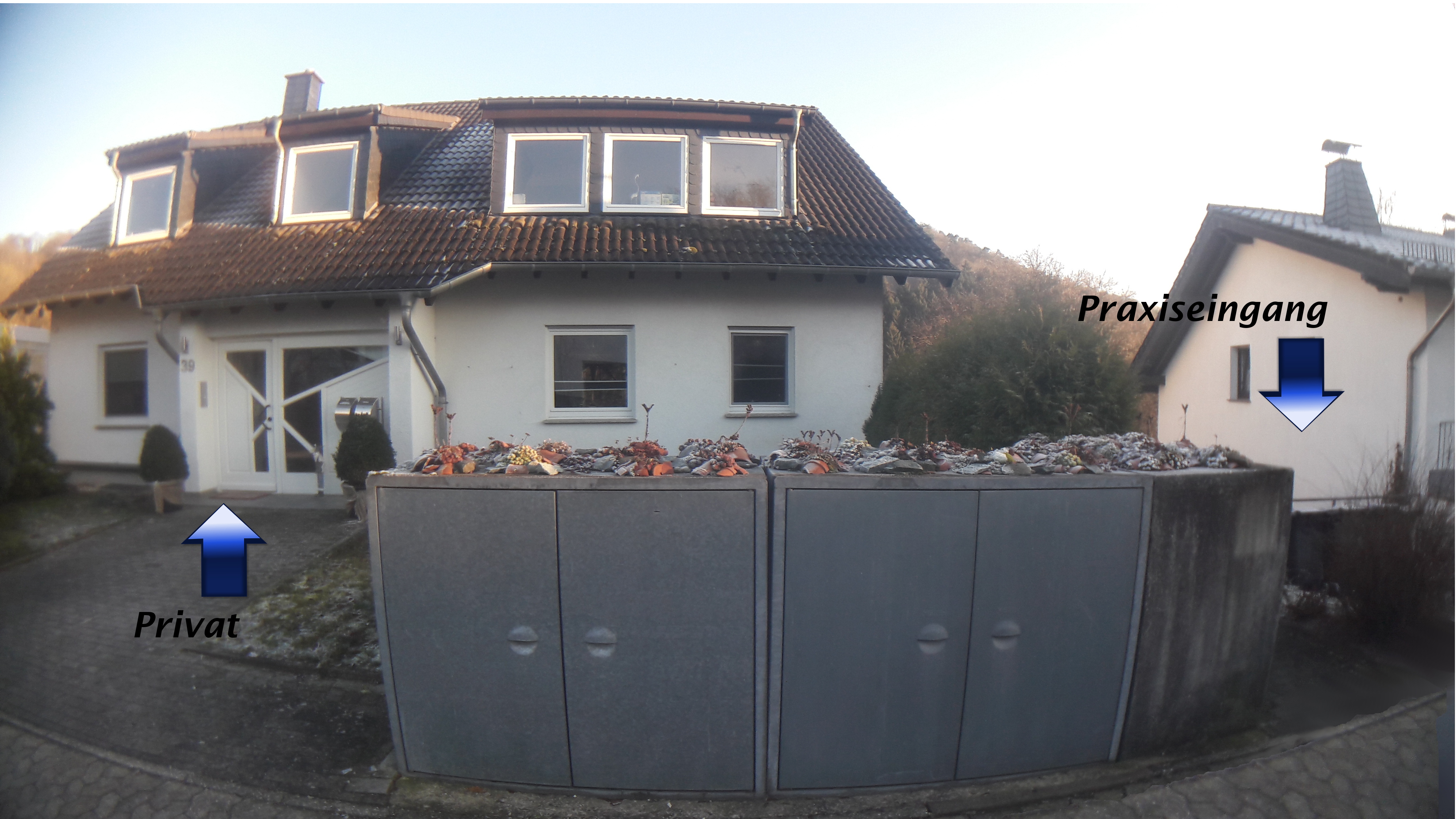 Parkplätze hinter dem Haus erreichen sie über die Einfahrt links vom Haus